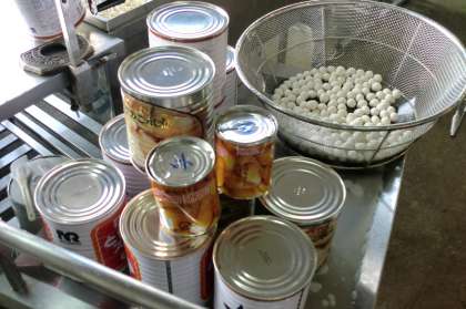 今日は,台風時に備えて保存していた缶詰や乾物を使って給食を作りました。焼きそばには乾燥にんじん,乾燥たまねぎ,中華乾麺。スープにはうずらたまご,たけのこ,しいたけ,はるさめを使いました。