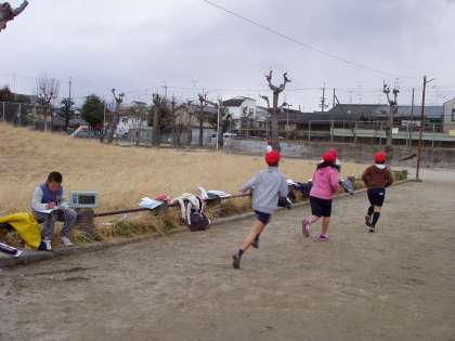 4年生は,1月末から体育で「5分間走」をします。今日から既に学習が始まったクラスがありました。寒い中でしたが,みんな自分の持久力を知るためにも,懸命に走っていました。測定をする子たちも,温かい応援を送っていました。