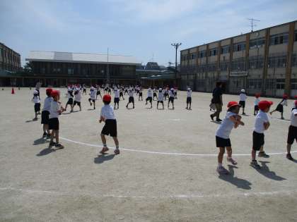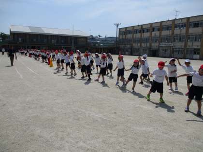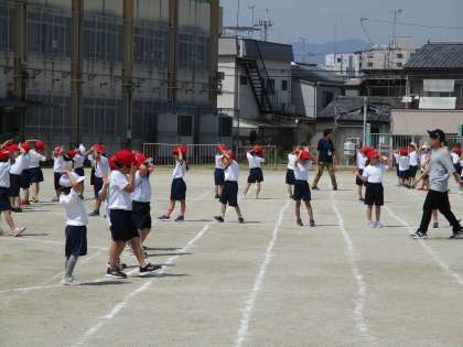 ダンスの振り付けも完成に近づいたので、クラス毎の隊形移動を覚えました。暑い中でしたが、大好きな曲で元気いっぱいに踊りながら、自分の場所を覚えました。