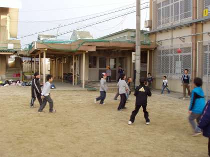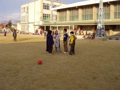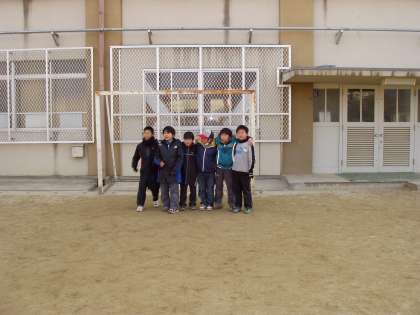 男の子達が,元気よく大勢でサッカーをしていました。フリーキックになった様です。作戦を考えたり,がっちり肩をくんだり。遊びにも真剣な様子が微笑ましいです。
