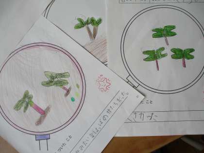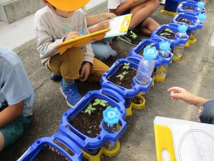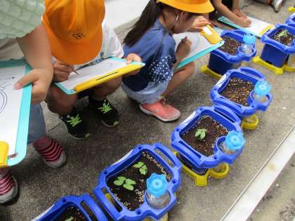 見つけたことや感じたことをかんさつカードに記録しました。形や大きさの変化を楽しみながら、毎日の水やりをしていきます。