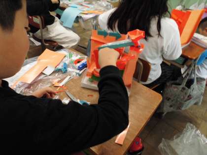 ビー玉が転がる仕組みを考えました。楽しみながら作りました。