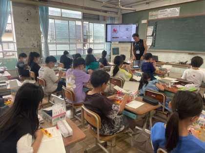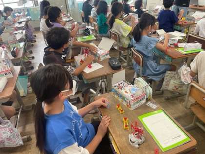 理科の学習では1人1つ、回路を組んで毎回実験を行っています。今日は、2つの乾電池のつなぎ方と電流の大きさの関係を調べました。