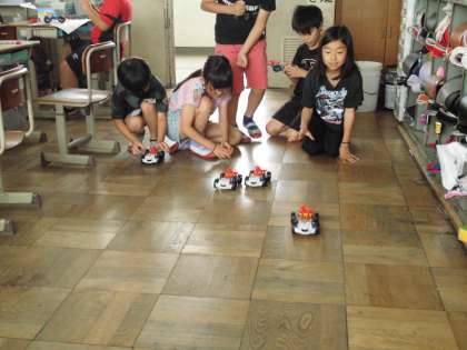 電池のはたらきの学習も終わりに近づいてきました。最後に、いろいろなつなぎ方で、車を動かしてみました。