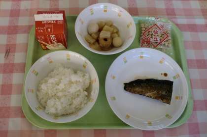 今日は節分の行事献立で,「ごはん,牛乳,にしんの煮つけ,関東煮,いり豆」でした。