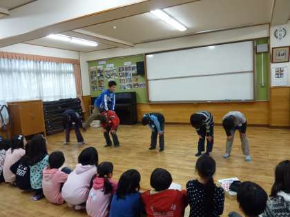 学習発表会に向けて,今日も練習をしていました。写真は,2重跳びと馬跳びの練習です。懸命に跳んで,ハアハア言っていました。