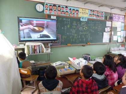 今日,「給食が出来るまで」のビデオを,みんなで見ました。