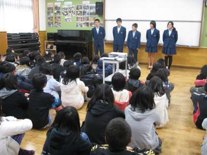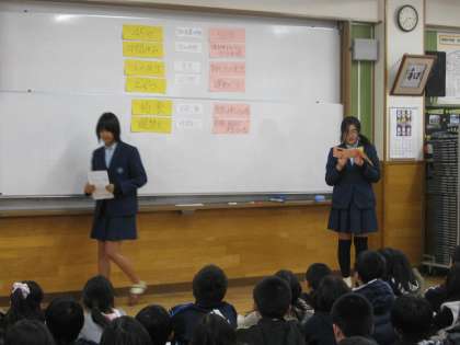 今日の六時間目は,八条中学校の生徒会の人たちが中学校生活について