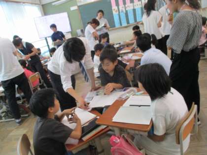 授業後には、よりよい授業づくりに向けて、教職員で話し合いを行いました。