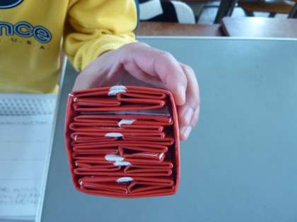 「牛乳パック,きれいに詰めなあかんなあ。」