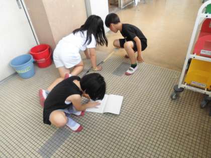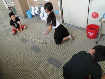 自分たちの持っている定規では、何度もはからないといけなくて時間がかかり大変でした。その後、巻尺を使ってはかると簡単にはかることができ巻尺の便利さを感じていました。
