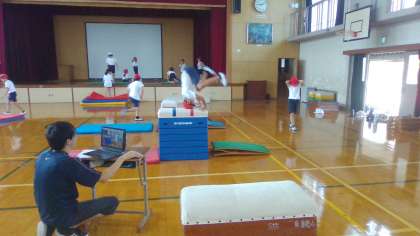体育科「とびばこ」の学習で、たくさんの跳び方を練習しています。