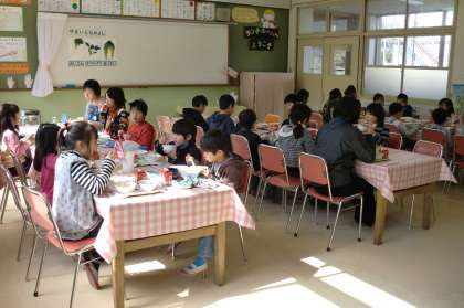 今日は1年1組がランチルームでした。初めての陶器食器に緊張気味の子どもたちでしたが,丁寧に扱い無事に食べ終わることができました。おかわりをたくさんしてくれて,おかずはきれいになくなりました。