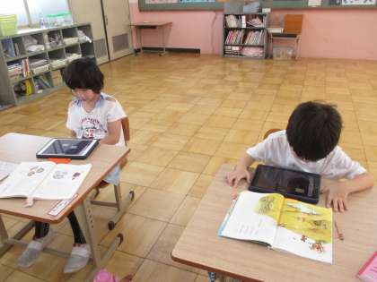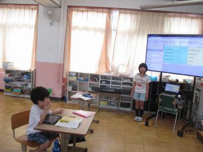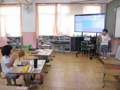 ロイロノートに題名と出てくる動物やストーリーを書込み、発表しました。まだまだ、自分が説明するだけで精いっぱいですが、繰り返す中で、伝え合うことにもっチャレンジしたいと考えています。