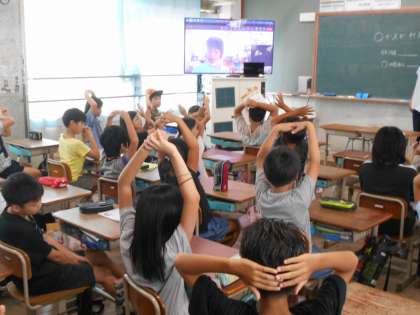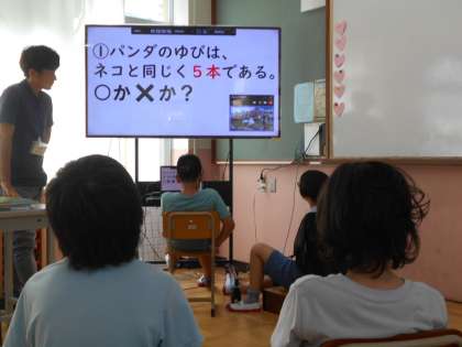 4年生がクイズの答えを考え、説明してくれました。4組からもクイズの内容を伝えられました。