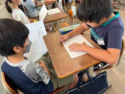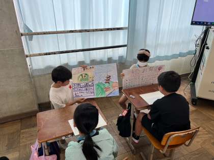 みどり管理事務所や文化財保護課の方から聞いたお話を画用紙にまとめて、5年生に発表しました。緊張した様子でしたが、練習したことを思い出して発表することができました。