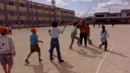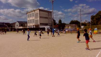 昼休みに運動場に出ると、ドッジボールをしたり、大縄跳びをしたりする6年生を発見。