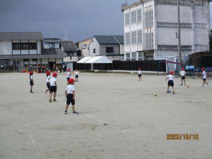 ボールけりゲームでは、パス練習で、相手がとりやすいところにパスできるようにがんばっていました。