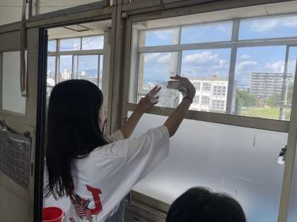 教室の壁の黒ずみや窓のよごれ、廊下の隅のよごれ等、その場所やよごれにあった掃除の仕方を学び、実際に掃除をしました。よごれがみるみるうちにキレイになり、「もっとやりたい!」とたくさんの子どもたちが言っていました。