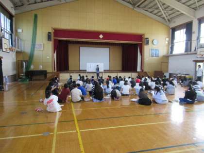 本日6時間目、5年生は学年で集まり、音楽の学習をしました。