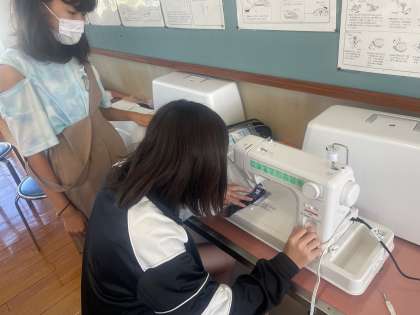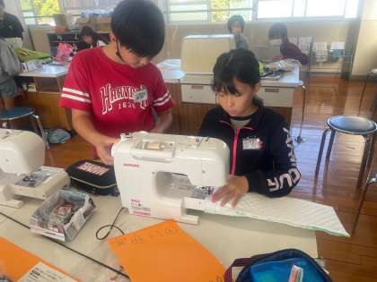 家庭科の学習ではトートバッグを作成しています。5年生で初めて使ったミシンの使い方を思い出して丁寧に縫い進めています。