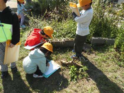 1年生は、生活科の学習で西寺公園に秋みつけに行きました。前回の学習で、「秋といえば・・・」をテーマに秋についての思いを広げていたので、とても積極的に活動できていました。