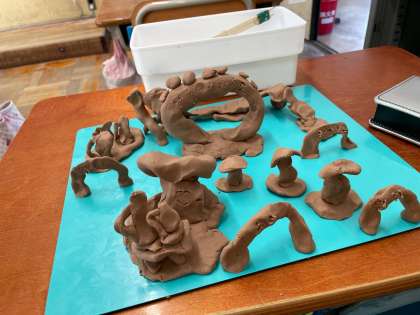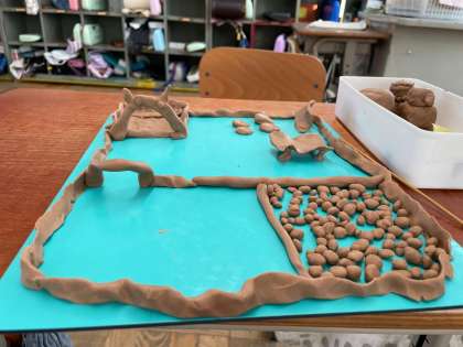 住んでみたい町、あったらいいなと思う町を想像して、ねん土で形にしました。