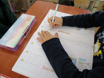 ひらがなと違って、一つの漢字にいくつもの読み方があったり、画数も多い漢字が出てくるので、難しく感じることもあるようです。けれども、ゆっくりと繰り返し練習することで力になっています。