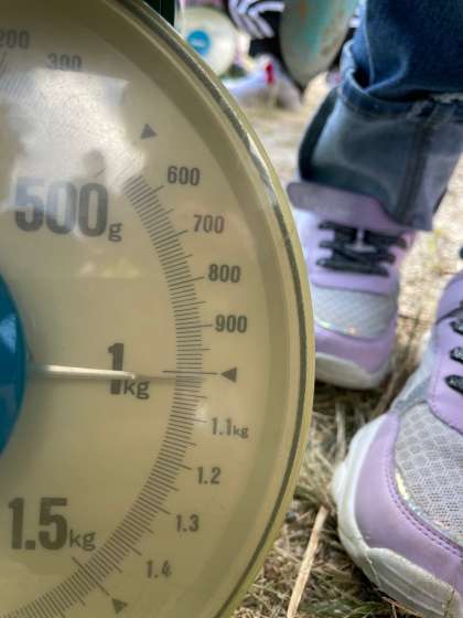 どの班も1kg前後の記録でしたが、1班のみ、1kgぴったりでした。