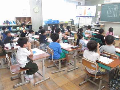 同じ学年と道徳で交流したり、上学年と図工を一緒にしています。同じ学年との交流では、授業の後、声を掛け合う姿があります。
