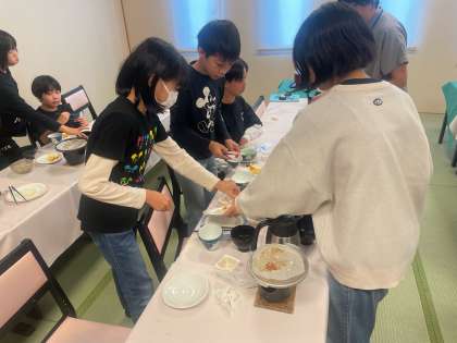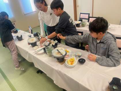 2日目も朝から元気に美味しい朝ごはんを食べた子どもたち。食べた後はみんなで協力して、後片付けができました!