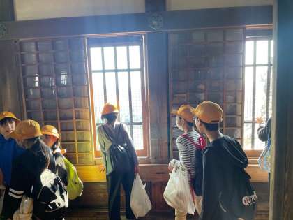 修復時に折れて継ぎ足された心柱を見て、さらにこの世界遺産を見て、大切にしたいと感じていた子どもたちでした。