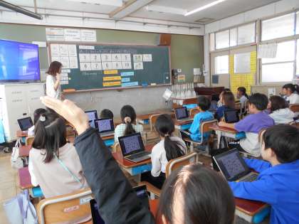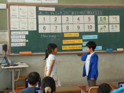 相手に伝わるように工夫しながら、数をたずねたり、数えたりする学習をしていました。英語の簡単な語句や基本的な表現を用いて、質問したり、質問に応えたりすることができていました。