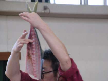 また、魚の三枚おろしや鱧の骨切も実演さしていただき、子どもたちは興味深く見せていただきました。