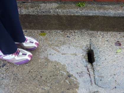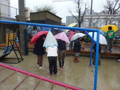 運動場の脇に,側溝があり,そこへ雨水が流れているのを発見しました。