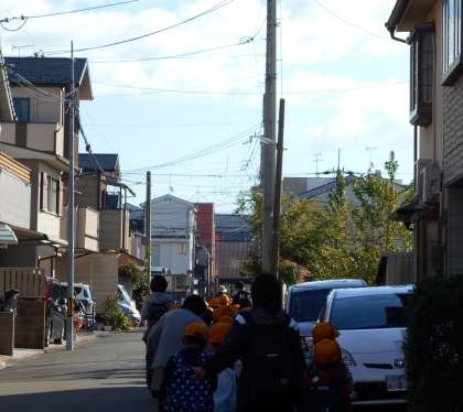 生活科の単元「あきといっしょに」の一環として、秋を感じるとともに学級を越えた交流が図れるようにと、今回の遠足を実施しています。