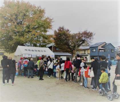 唐橋校区の射的は、大人気で、長蛇の列でした。みんな、ねらいを定めて商品をゲットして喜んでいました。