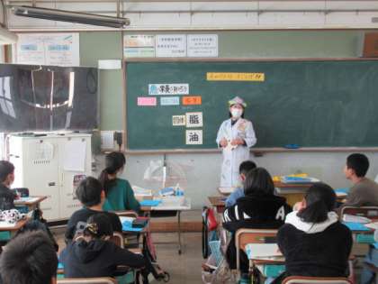 肉の「脂」と魚の「油」を比べ、魚に含まれる栄養について考えました。血液をサラサラにしたり、頭の働きを活発にしたりする魚のパワーに驚き、もっと魚を食べていきたいとふり返りをしました。
