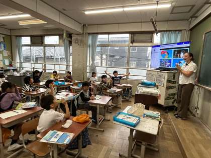 ALTのジョー先生と一緒に外国語の学習をしました。本場の英語に触れることで、子どもにとってより良い学習になったと思います。3−1では、初めてジョー先生と学習する時間になったので、クイズや質問などをして盛り上がりました。