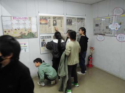 朝日新聞の工場を見学した際には歴史的な出来事が書かれた新聞が展示してある部屋にとても興味を示していました。