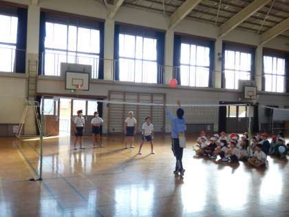 4年生は、ソフトバレーボールについて学んでいました。ルールを知ったり、練習方法を考えたりしていました。