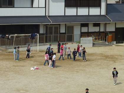今日の「みんな遊び」は,「中当て」です。2時間目の授業が長引いてしまったので,みんな慌てて運動場に駆け付けましたが,しっかりと楽しんでくれていました。
