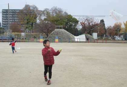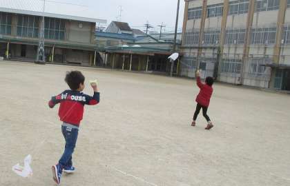 冬の遊びとして、凧揚げをしました。少しの風に対しても、全力疾走して、風をつかまえています。風が強くなり、寒くなってくる日々も、元気に楽しみたいと思います。