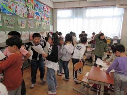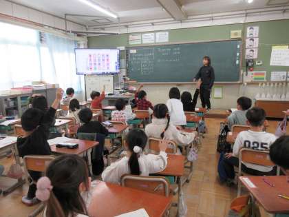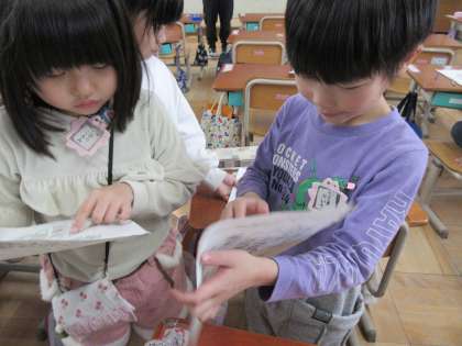 1年生は、算数科の学習で「もののいち」の学習をしました。ヒントをもとに、宝物がどこに隠れているのかを考えました。