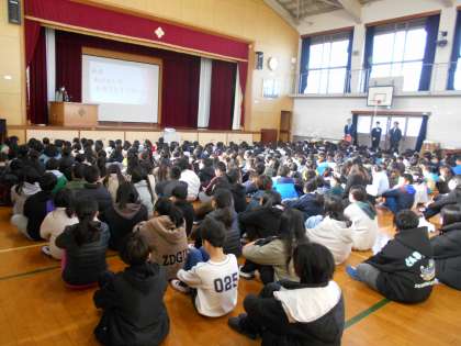 2学期の終業式でお話があった「新年の目標を立てる」「命を大切にする」の観点から、自分の決めた目標に向かって努力を重ねてほしいということ、自分の身を守ることの大切さや命の尊さについて改めてお話がありました。