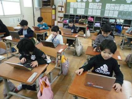 1年生は、2学期から本格的にタブレットの使用を始め、ミライシードやロイロノートに慣れ親しんできました。