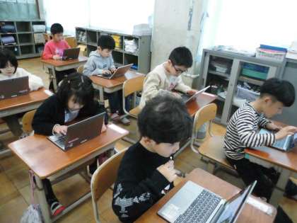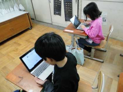 初めてキーボードを操作した子どもたちからは、「どの指使うのかが難しい…。」「なかなか見つけられない!」と苦戦する声が聞こえてきました。ですが、初めてのことにチャレンジしてみてとても楽しかったのか「次は、いつやれるの?」「もっとやりたい。」と意欲的な声がたくさん聞こえてきました。