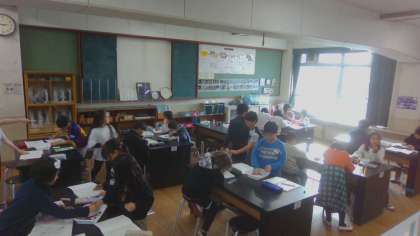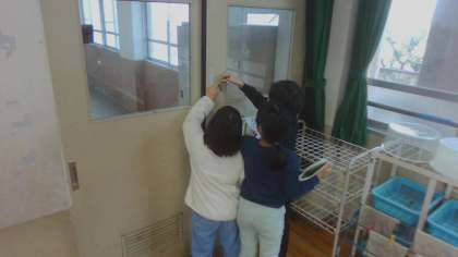理科室の中でじしゃくが引っ付くところはどこかみんなで調べています。