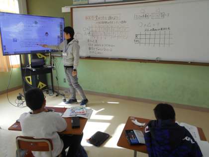 右は、算数「変わり方を調べよう」の学習です。表を使って数の変わり方を確かめました。それぞれの教室でしっかり学習に取り組んでいます。