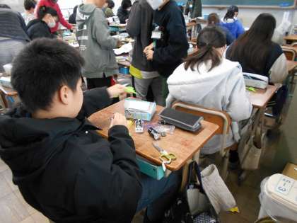 今日は、鉄心のないモーターを作りました。導線を丸くしたり、中心がずれないように気を付けました。難しいところは先生にアドバイスしてもらいながら作業しました。